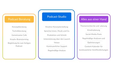 Wenn wir gemeinsam in die Produktion deines Podcasts gehen, erhältst du mehr als nur eine Dienstleistung: