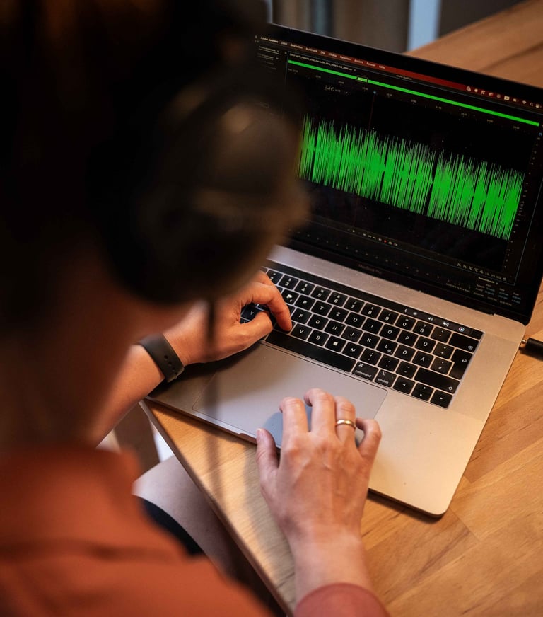 Dein Podcast soll klar und professionell klingen – dafür übernehme ich die Nachbearbeitung. Schneiden, entfernen von Störgeräusche und einfügen von Musik oder Soundeffekten, die das Hörerlebnis abrunden - so klingt dein Podcast von Anfang an hochwertig und ansprechend.